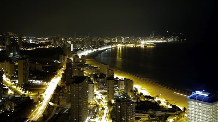 Cada noche, cuando cae el sol, la oscuridad no llega al mar. En su lugar, aparece una claridad artificial que ya forma parte del paisaje costero moderno. Farolas, hoteles, puertos, plataformas petrolíferas e, incluso, barcos pesqueros lanzan haces de luz que inundan la superficie y penetran bajo el agua, hasta 20 metros de profundidad en algunos casos.