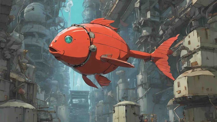 La imagen corporativa de Sakana AI, un pez artificial que explora el mundo.