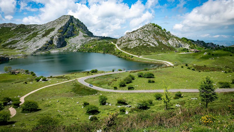 Lago Enol, en Picos de Europa, en Asturias (España).