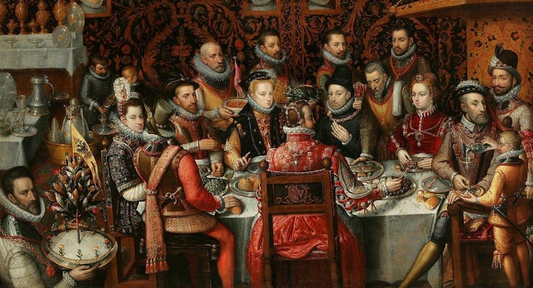 El banquete real (Alonso Sánchez Coello, 1579) en el que aparece Felipe II rodeado de familiares y cortesanos.