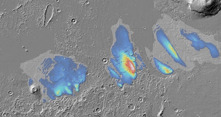 El volumen total de hielo contenido en los depósitos de Medusae Fossae, en el ecuador marciano, sería de 400.000 km3.