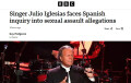 La BBC resalta que el cantante Julio Iglesias se enfrenta a una investigación en España por acusaciones de agresión sexual. La TV británica explica que dos mujeres han denunciado al cantante español por asaltarlas sexualmente mientras trabajaban para él y por normalizar el abuso en un entorno coercitivo, amenazador y violento. Apunta que el caso está siendo investigado por la justicia, pero fue desvelado por el medio digital español ElDiario.es y por el estadounidense Univisión que han publicado testimonios de las dos mujeres que fueron empleadas en dos de las propiedades de Julio Iglesias en Punta Cana (República Dominicana) y Lyford Bay (Bahamas) y que denuncian que los abusos tuvieron lugar en 2021. Añade que Iglesias tiene 82 años y ha sido un nombre muy popular en España desde los años 60 y ha vendido millones de discos en todo el mundo.