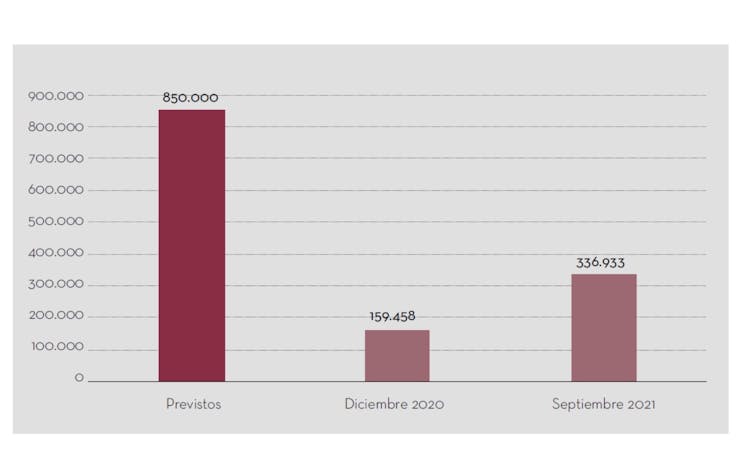 La posibilidad de una nueva fractura o de la cronificación de la pobreza y la desigualdad en determinados sectores sociales hace concluir a los autores del informe que es necesario un mayor esfuerzo a corto plazo en la respuesta desde el sector público (como ilustra el gráfico sobre la aplicación del ingreso mínimo vital que recoge el informe).