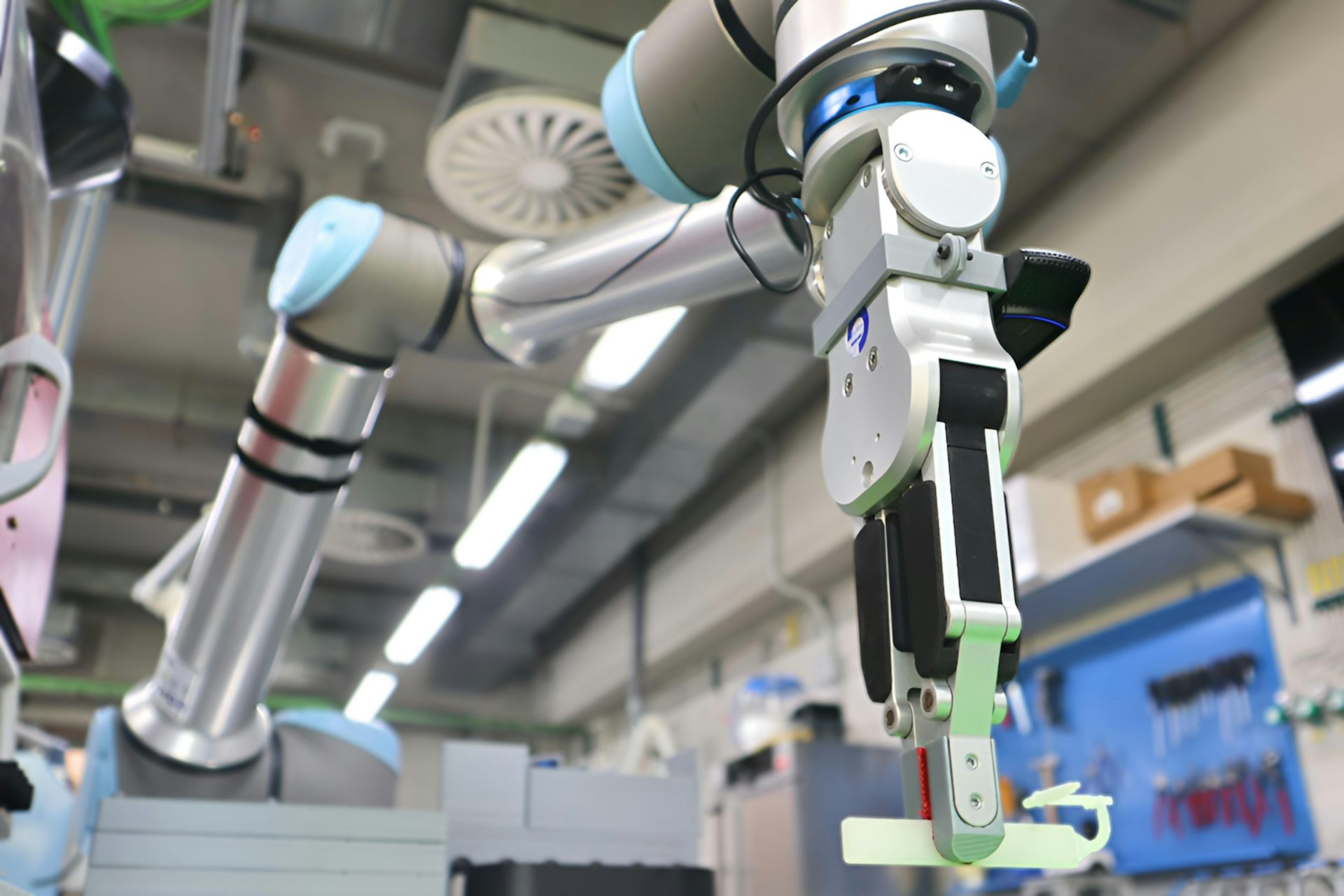 Brazo robótico transportando probetas para ensayar en el laboratorio de IMDEA Materiales en Madrid.