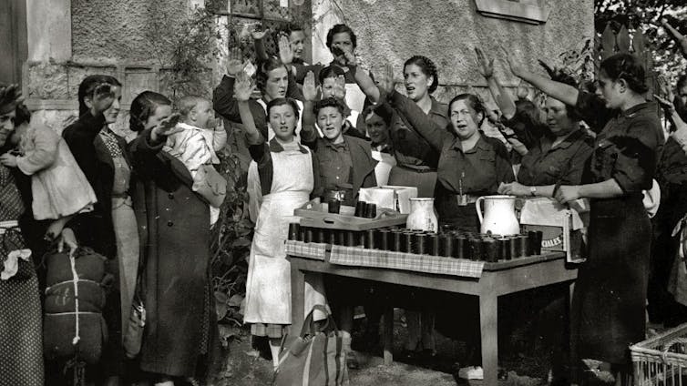 Reparto de comida por mujeres de la Secci n Femenina de Fondo Mar n Kutxa Fototeka.